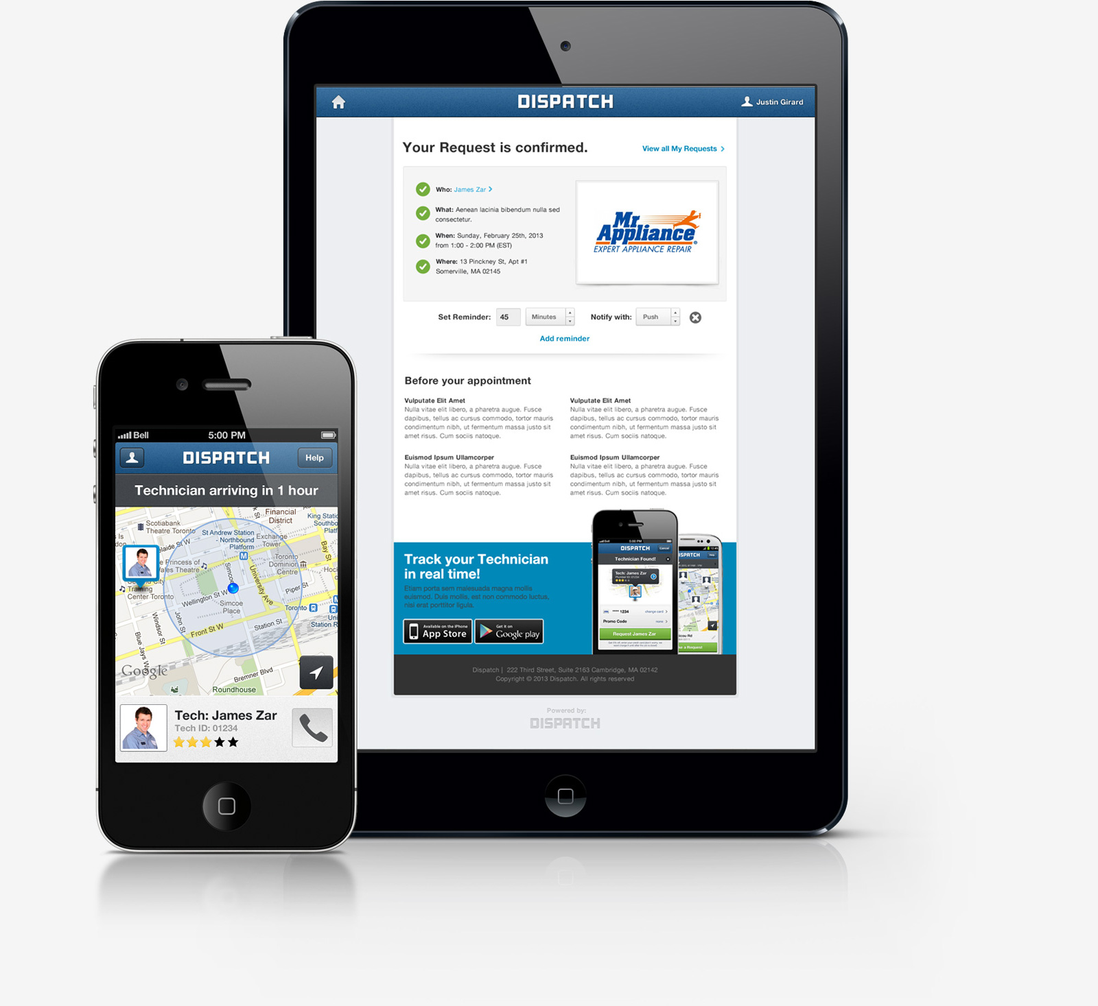 Dispatch takes the concept of "every step of the way" and turns it into a reality – the "UBER of handyman services" allows users to find any type of handyman or technician within their area, and contact for service immediately. We worked with Dispatch to focus the three products they had created into one usable website. From designing the look and feel, to providing user experience consulting, and running through several different skins, we took on the role of product design team with relish to create a one-of-a-kind, accessible product for end users.