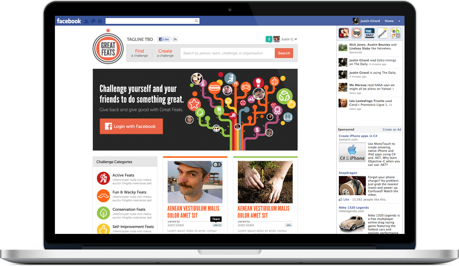 Great Feats - an interactive way to engage with friends and donate to a good cause! Great Feats came to us with a belief and a brand, and we took that belief and magnified it to where it is today. With project design, front and back end development, and user experience, we took a an idea for a good cause, and launched it with a focus on crowd sourcing and an emphasis on friendly competition.