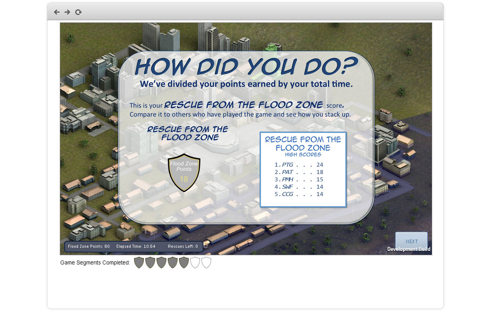 "Rescue-D" is one of our favorite projects here at Eyehand. We had the opportunity to work with the Eunice Kennedy Shriver Center in Waltham, MA on a NIH (small business innovator) grant to create a game that would help train emergency response teams on how to deal with people with disabilities. In addition to producing the initial idea for the game, we wrote a custom LMS which interfaced with Moodle. The game itself was built in Unity and featured an interactive 3D experience.